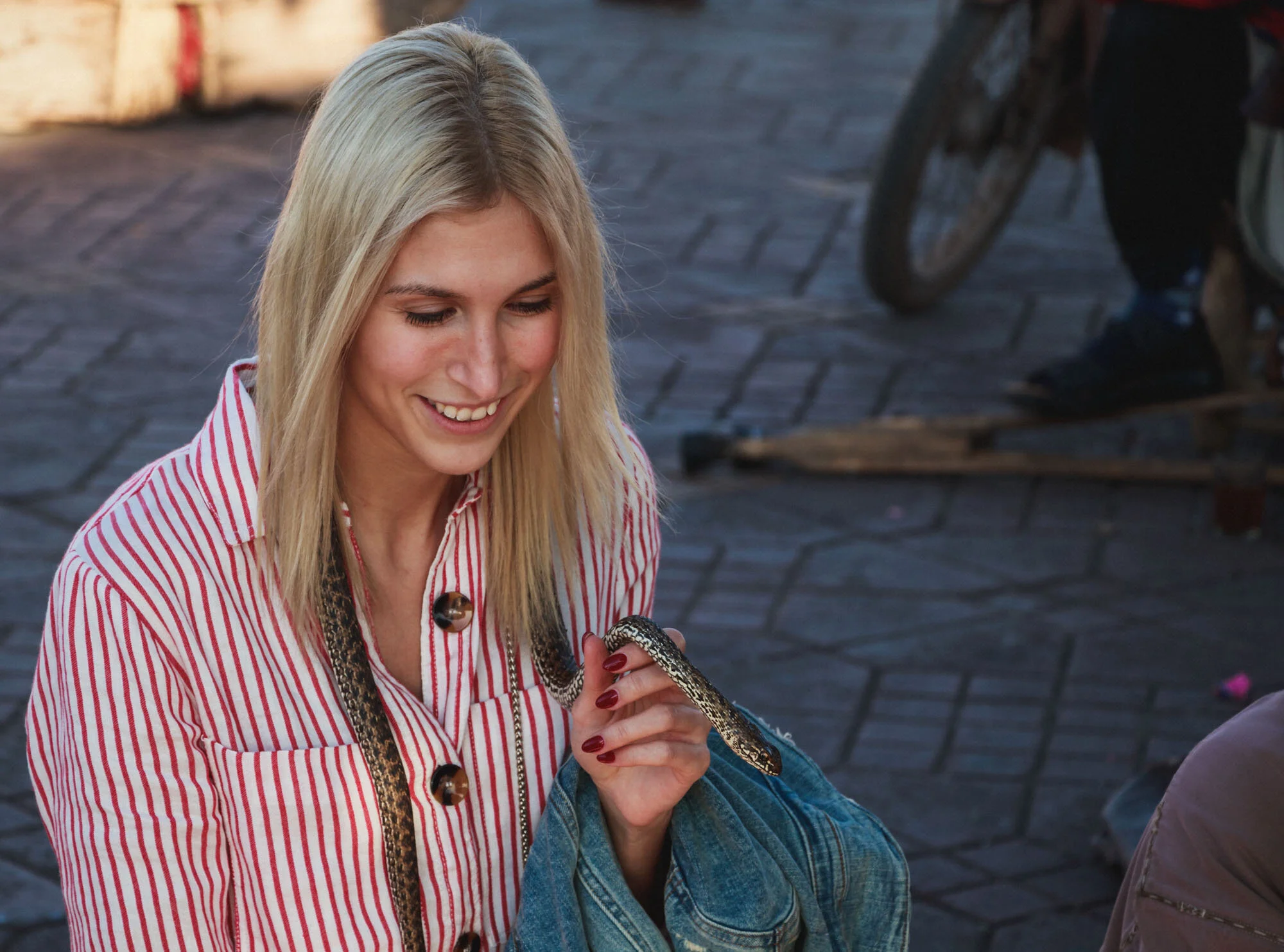 When we first walked into Jemaa el-Fnaa and we spotted some snakes. As we were taking photos, snakes were wrapped around our neck and we got them to take photos of us behind a dancing cobra. Once we wanted to leave, they wanted €20 euro each. However, we negotiated after the fact and only paid €5 euro each. Once we quickly walked away we were bombarded with henna women and restaurant owners. Photos with monkeys on chains and people in costumes are other common scams.