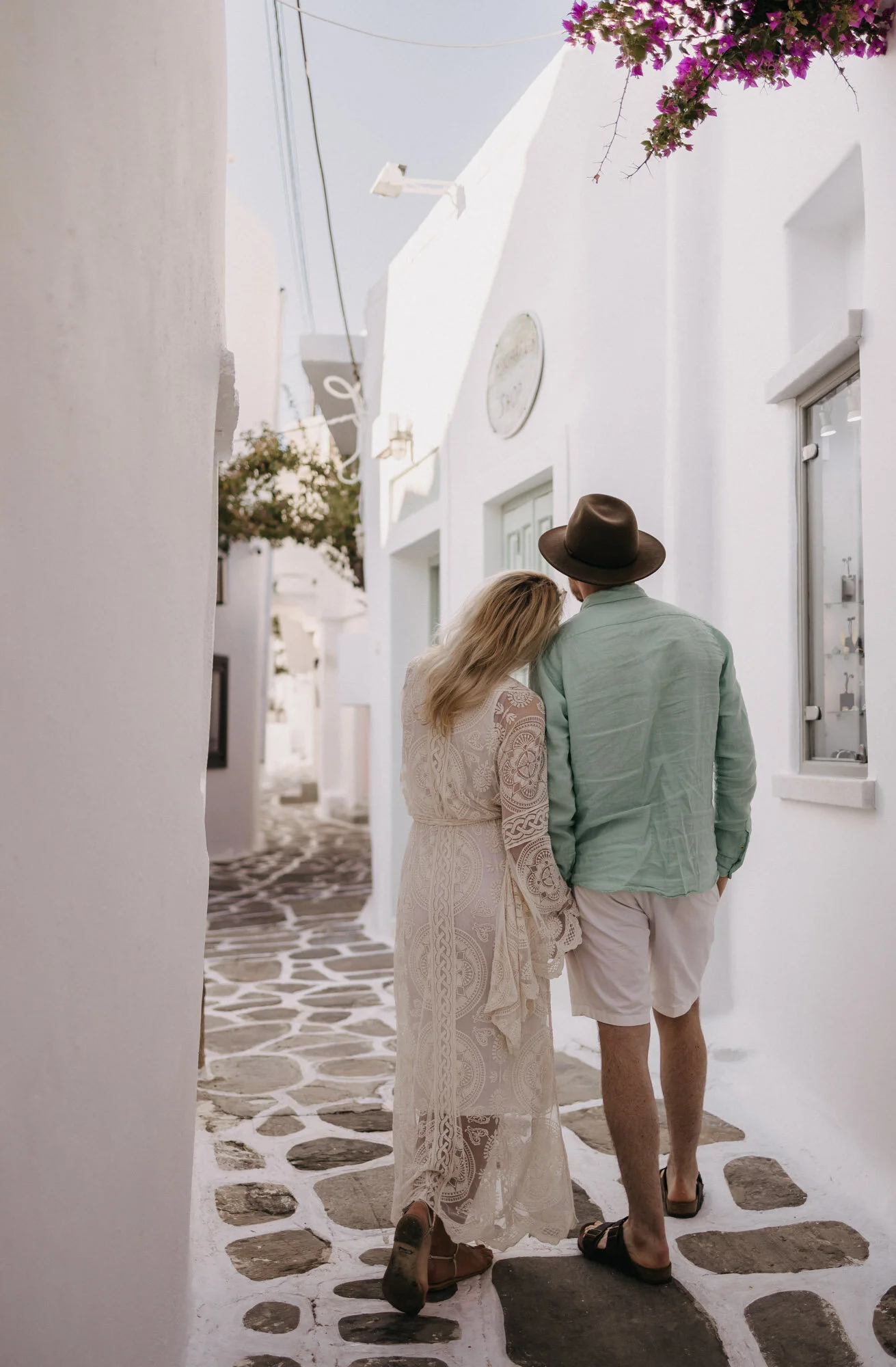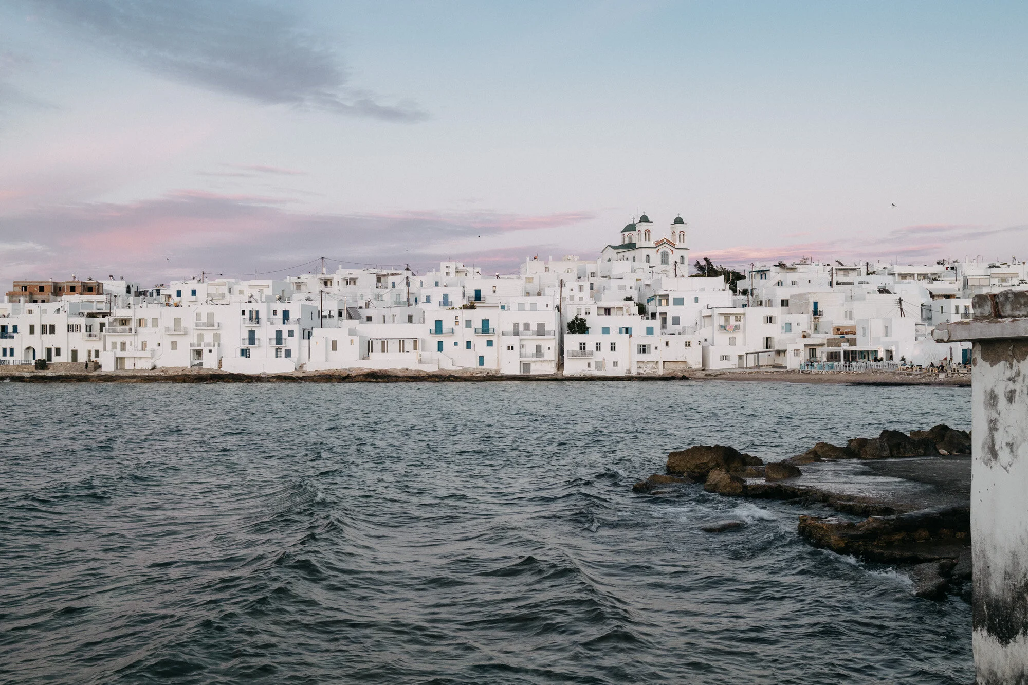 We woke up at 6am and drove to Lefkes. This town is located in the mountains and has beautiful white streets similar to Naoussa. The streets were very quiet. Interesting shadows formed as the sun rose. There were many photogenic locations with pink flowers. We couldn’t find any cafes open for breakfast so we went back to Naoussa where there were more options.
