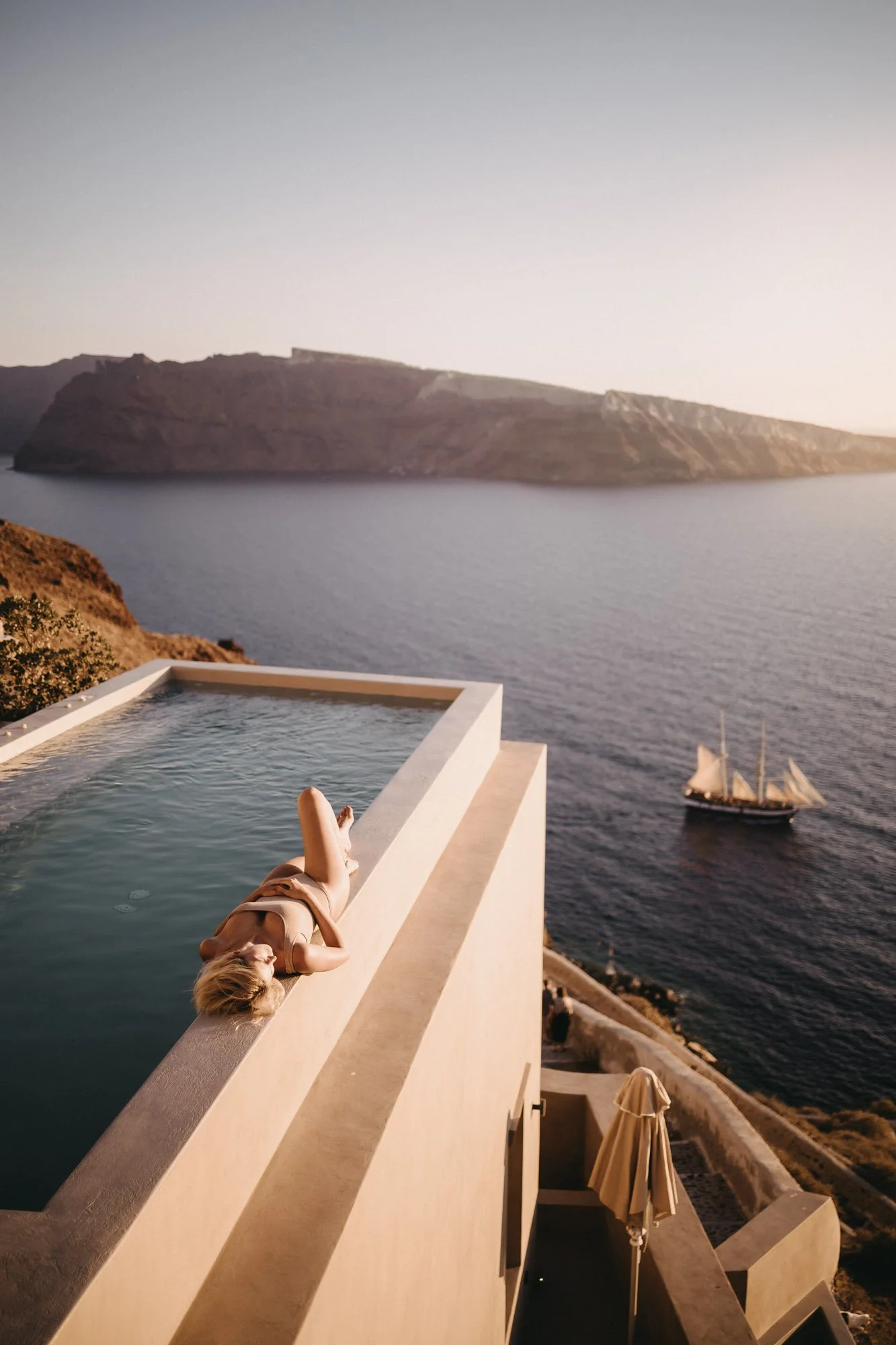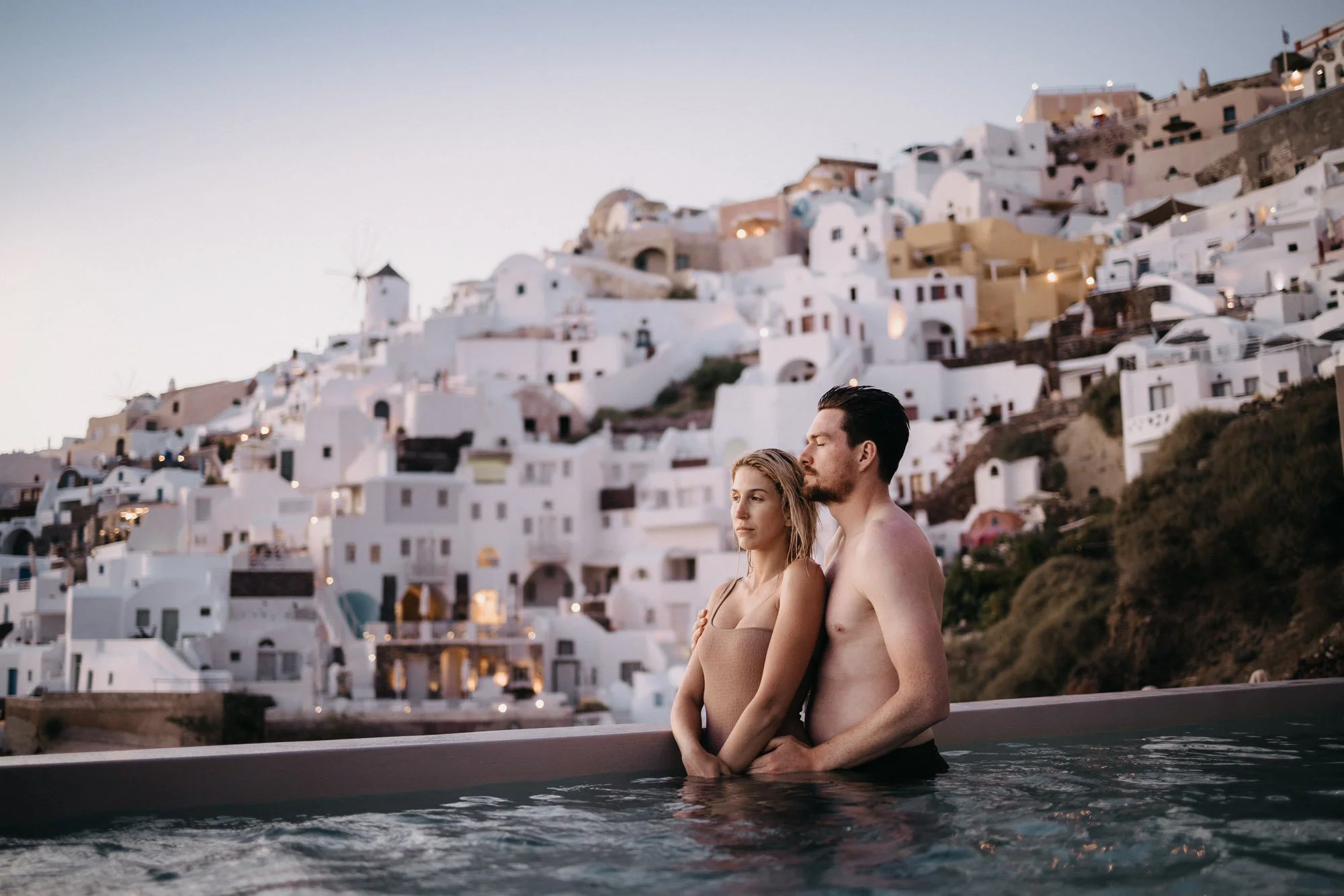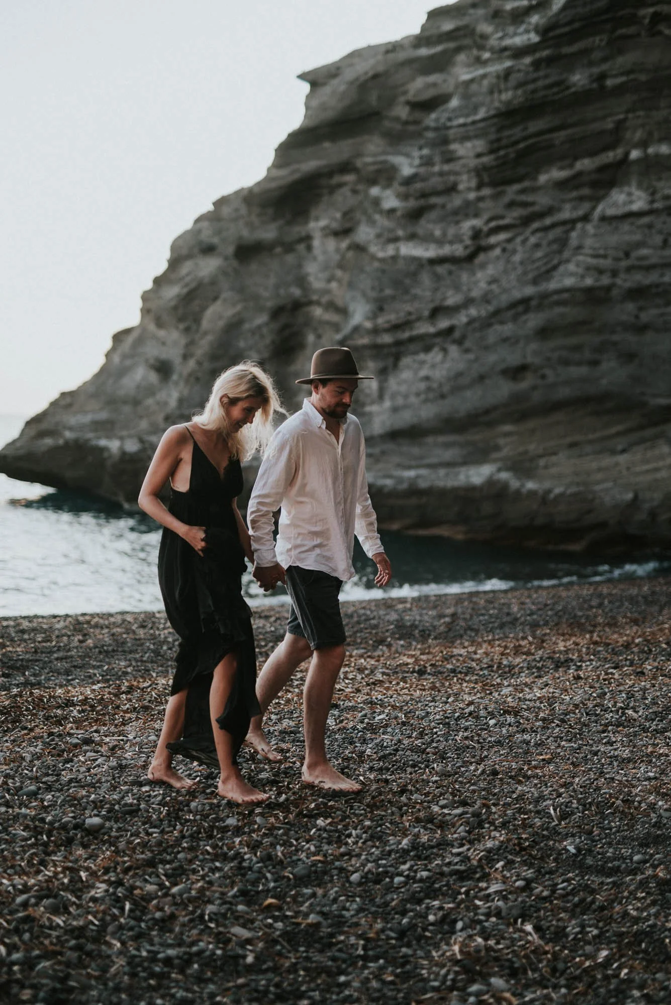Through Instagram we found an amazing photographer called Michael Kouvalis. We booked a sunrise and sunset photoshoot and got some lovely photos to remember the trip. For sunrise we went to a hidden spot on black pebble near Oia called Koloumbo Beach and we were the only people here. It was unlike any other beach we had visited and the black cliffs had unique formations. Further South, there are other more popular black beaches called Perissa and Perivolos.