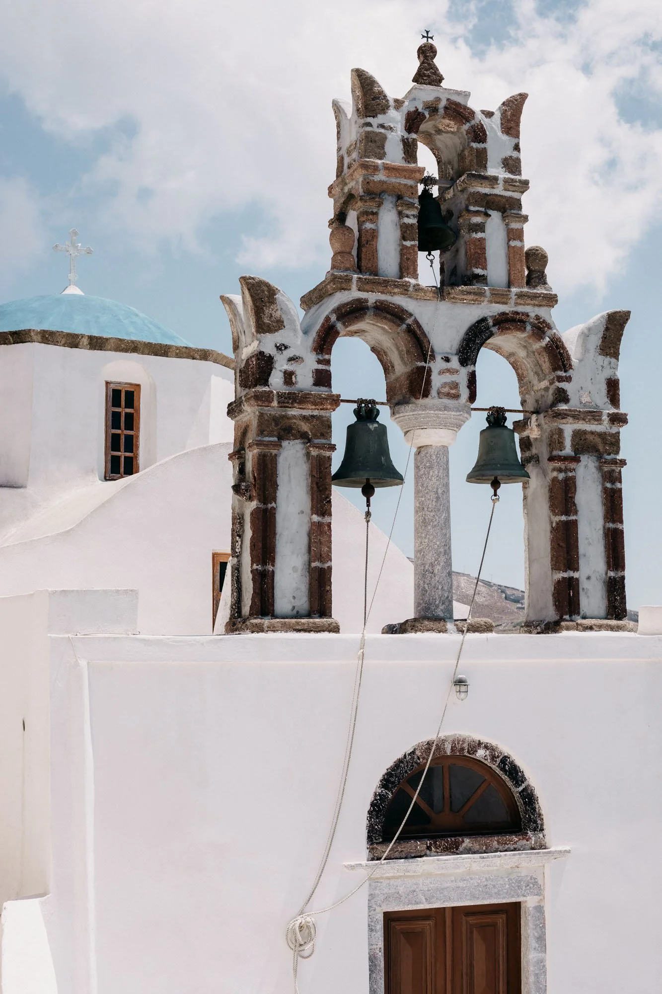 For sunset later that day we met in Imerovigli. We walked from the luxurious hotels on the crater rim down to Skaros Rock. We walked around Skaros Rock and further down we found a little Church. People were allowed on the roof next to the blue dome and church bells so it’s a very photogenic spot.