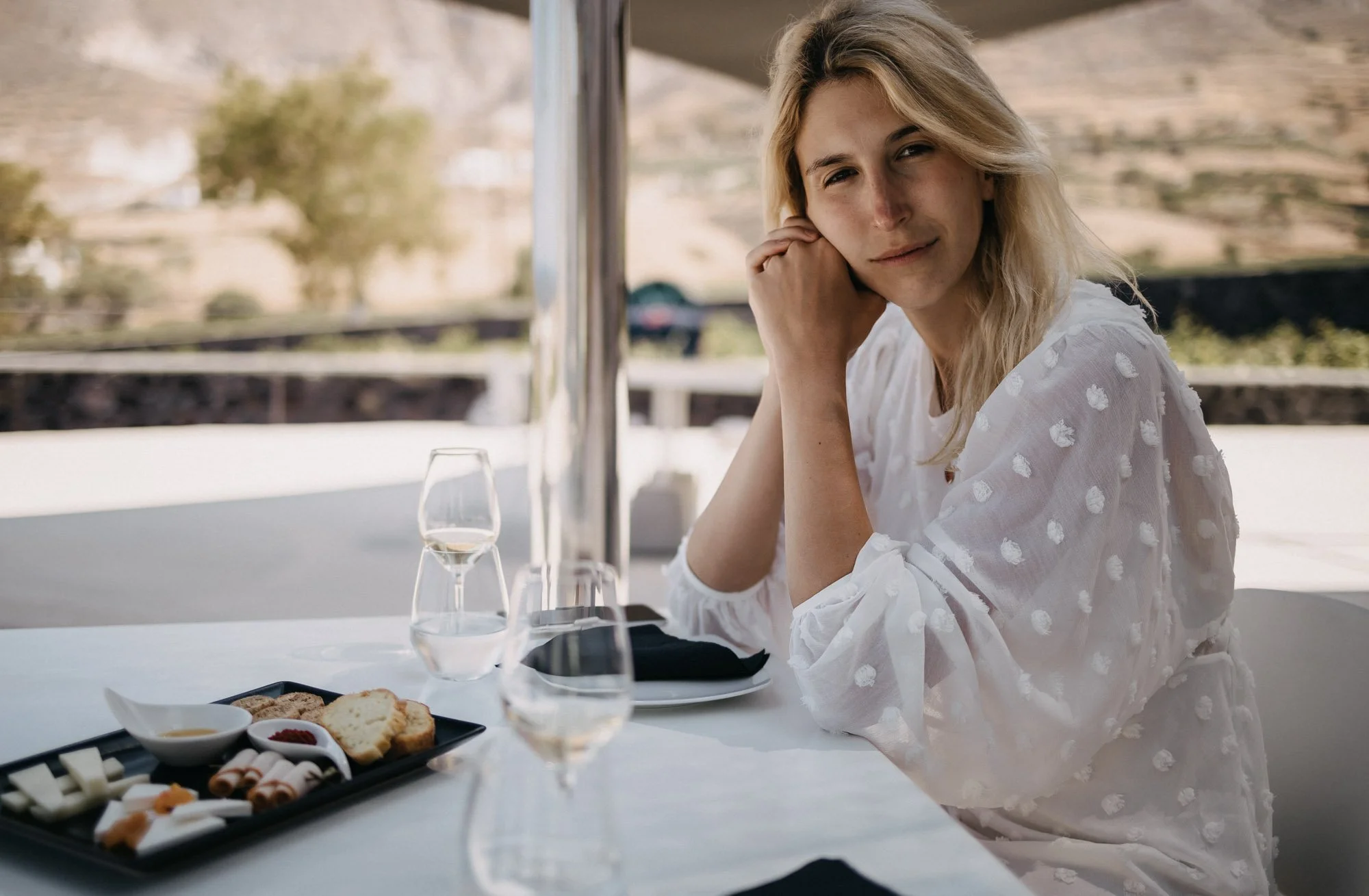 The next day we visited another Winery called Venetsanos. It was the first industrial winery on the island and is located above the port of Athinios. From the outdoor patio we had a magnificent view while enjoying a superb wine. From here you can see Fira and Imerovigli. The structural design is unique as it was constructed on the top of the cliff face and moved downwards. They used gravity to make it energy efficient as there was limited access to electricity. In the factory there are tools on display that they used to produce wine with. There is also the option for a tour and wine tasting here.