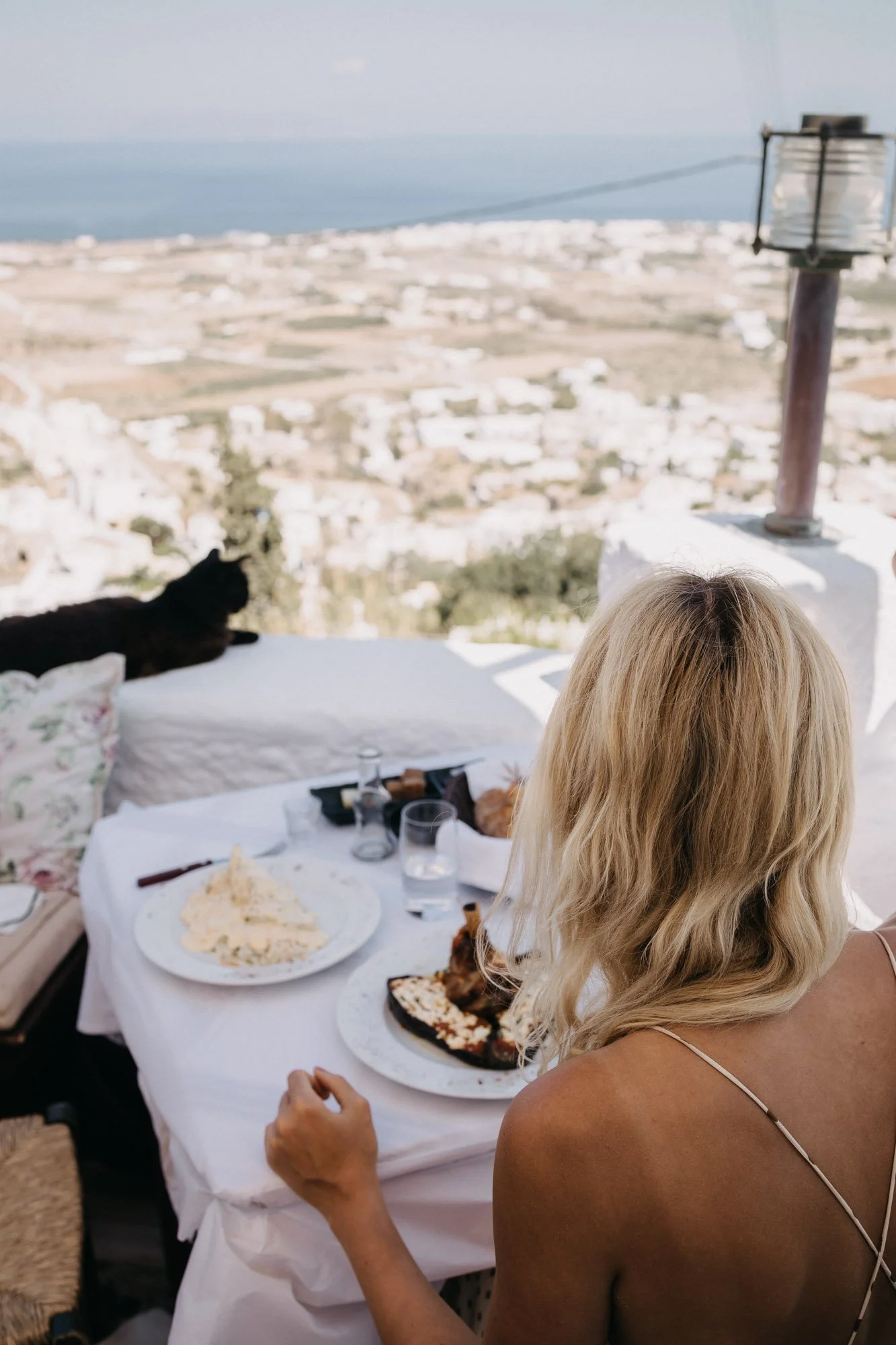 Pyrgos is a charming hilltop village, surrounded by vineyards. It is the highest village on the island and has panoramic views. It was the former capital of Santorini and the best preserved medieval settlement on the island. We loved exploring the steep medieval alleys and found some lovely wine bars, galleries and boutique shops. We followed the sound of music and found a busker playing a traditional guitar in a covered walkway. Pyrgos is underrated, it is calm, less picture perfect and relatively untouched by the tourist industry.