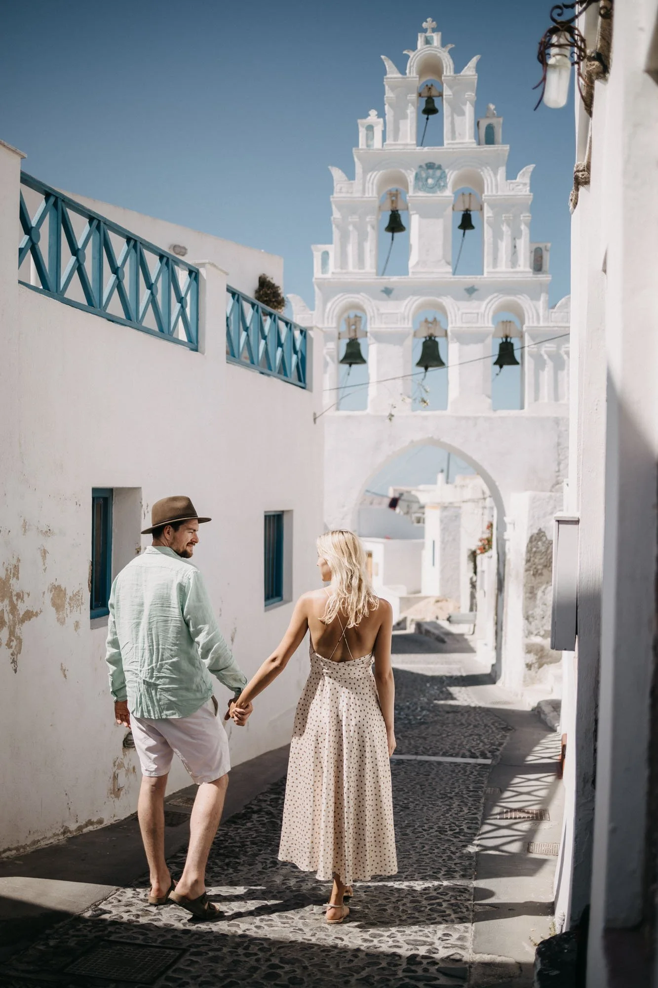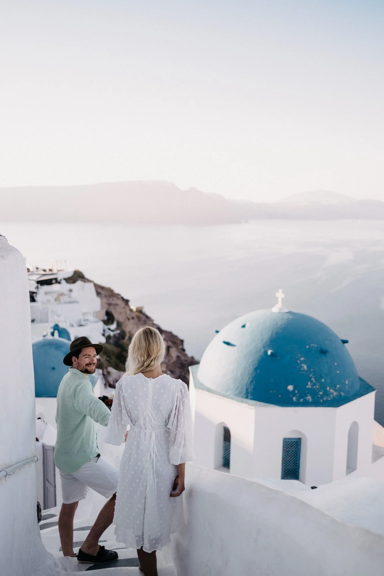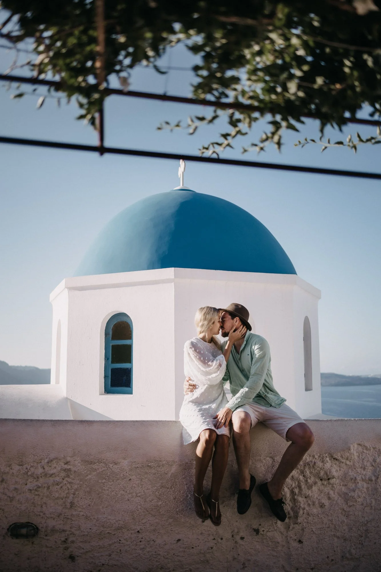 Sunrise is the best time as it is calm. Oia is known for its blue domes. There are many spots where the domes can be captured with the ocean in the background. Click here to see our favourite spot on google maps.